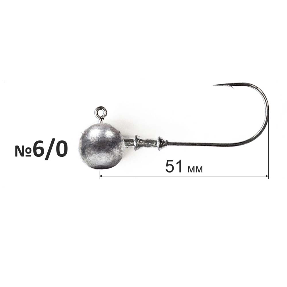 The jig head from DS Dnipro-Lead is a spherical sinker, cast from lead with a hook fixed to it dead in it. A jig head is one of the simplest ways to equip various edible silicone lures, be it twisters or vibro-tails, but the installation is not inferior to various articulated assemblies in terms of catchability, therefore it is always in demand, and its popularity among anglers is only growing. Jig heads vary in hook size and lead weight. When lowering the jig head to the ground, the sting of the hook with the bait will be lifted up, which is very similar to a feeding fish and provokes the predator to make an attack.