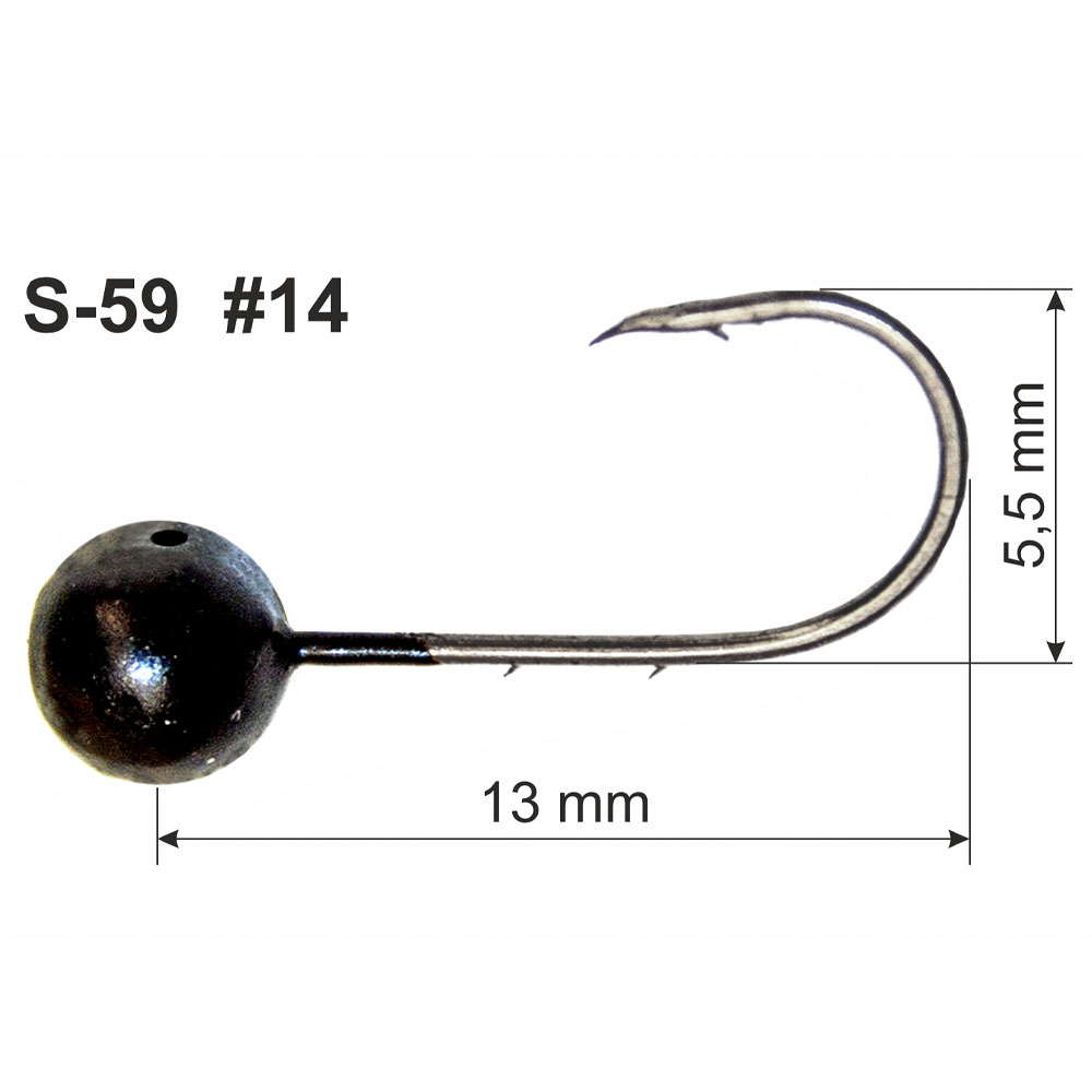 This mormyshka was developed by us on the basis of the S-59 hook. Due to the two barbs on the forearm, it perfectly holds the bait (both artificial and natural). The shape of the lead load is made in the form of a ball (shotgun). The main color is black. Additional colors are pomegranate and lemon. With the right selection of mormyshka, crucian carp, carp, bream, roach, and other fish will willingly bite on it. It is used for peaceful fish on a side nod, but it can be used in microjigging when catching mainly trout perch. In this case, it is best to use the smallest possible artificial baits – all kinds of worms, slugs, twisters, vibrotails.