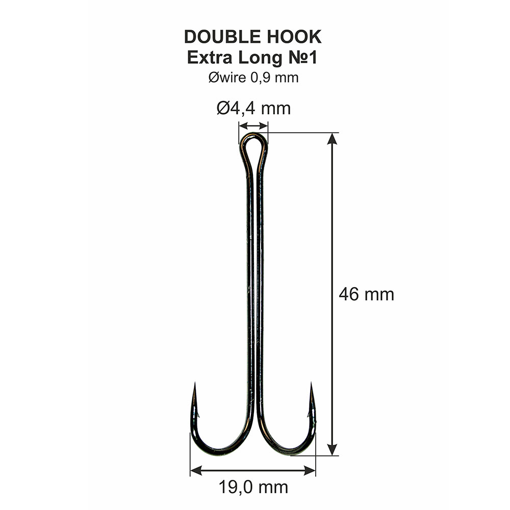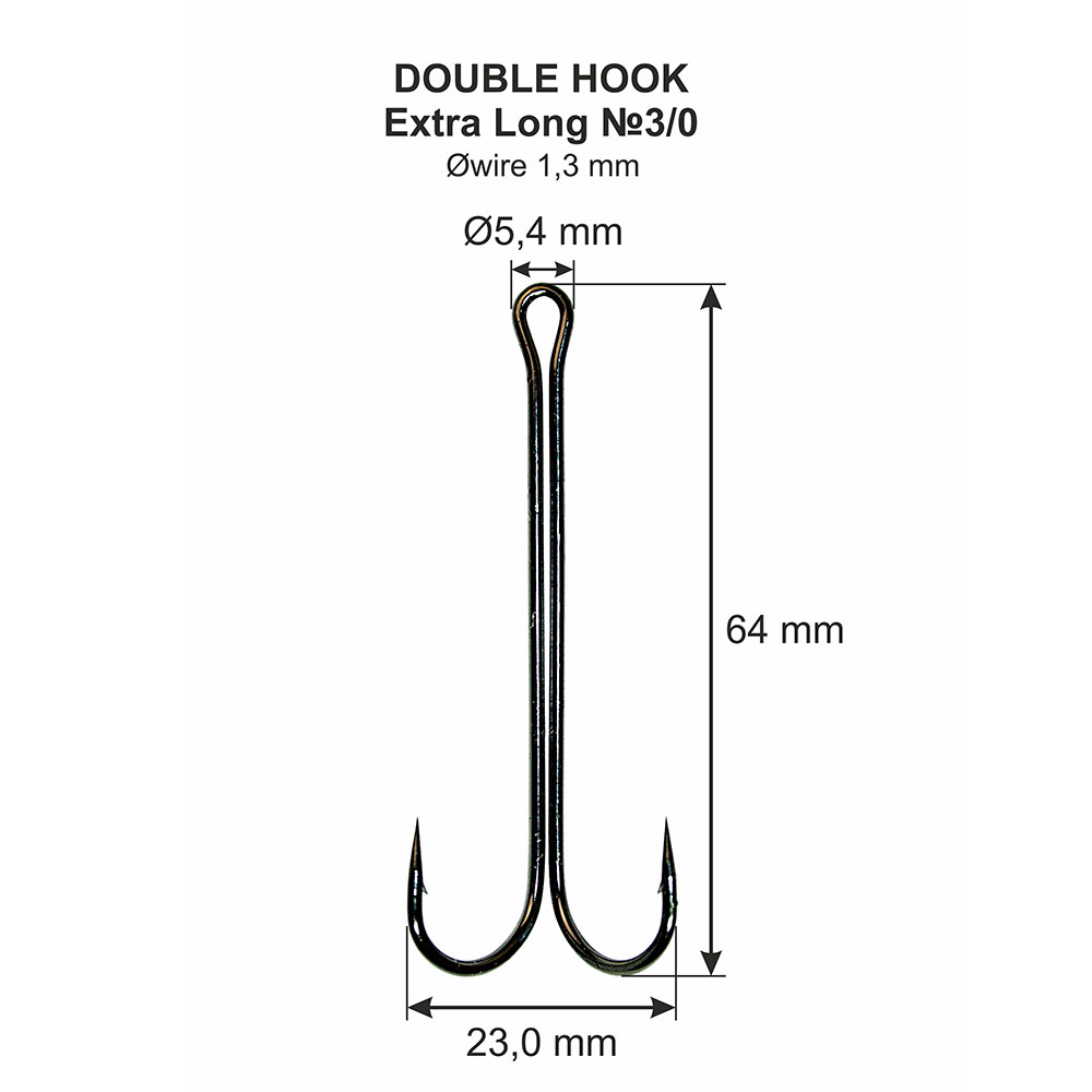 Удлинённый двойник DS (double hook) отлично подходит для охоты за хищной рыбой. Неспаянный (цельный), с удлинённым цевьём крючок имеет разведенные под 90 градусов специально заточенные жала. Изготовлен из очень качественной высокоуглеродистой стали, произведенной в Корее, которая ничем не уступает японской. Имеет безупречное качество и пронизывающие жала. При поклёвке уверенно держит любую рыбу. Рекомендовано использование со средним и большим размером силиконовых приманок. Данный тип крючка имеет специальное антикоррозийное покрытие, чёрный хром, сохраняя качество крючка даже при использовании его в солёной воде.